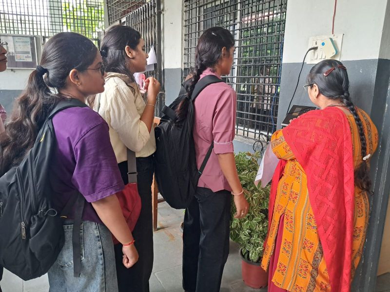 रजिस्ट्रेशन प्रक्रिया समझते हुए विद्यार्थी
